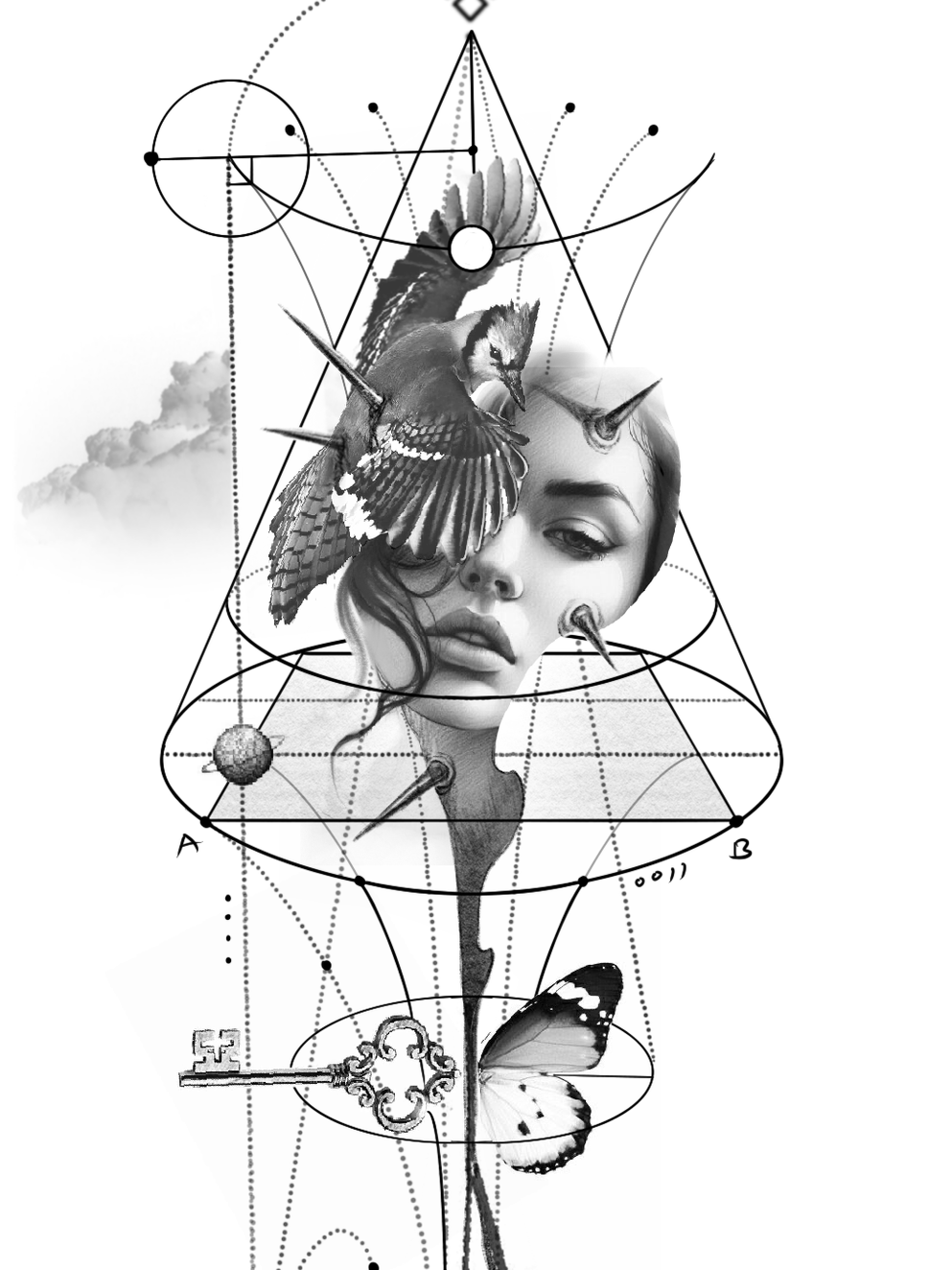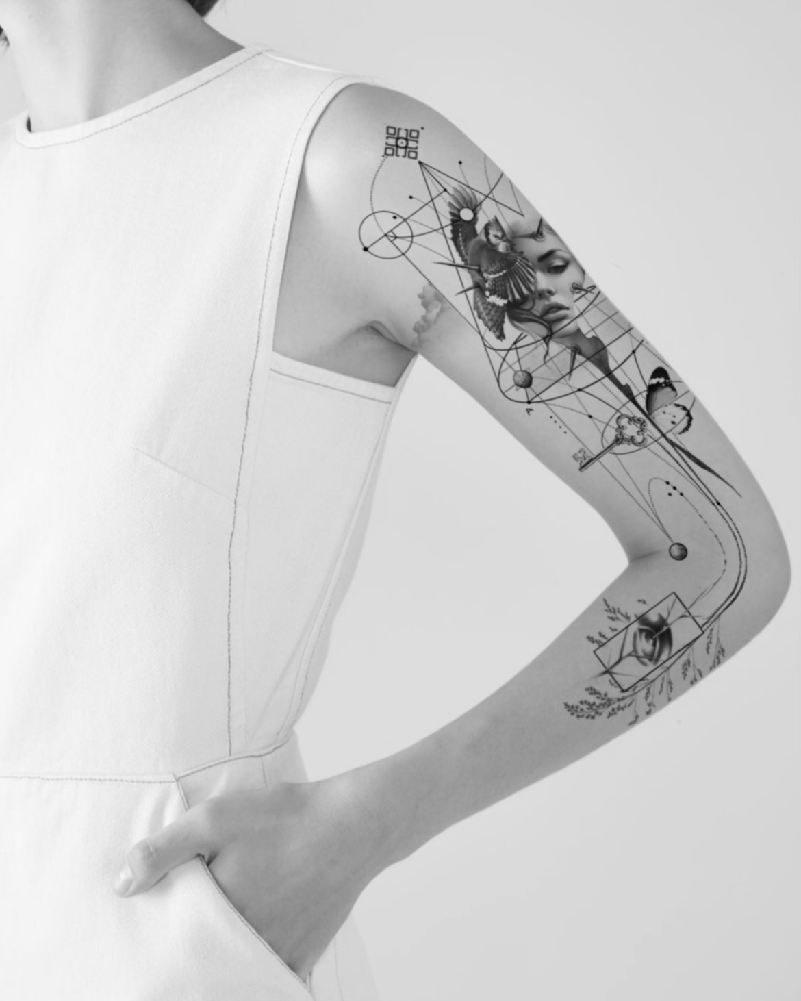 This tattoo design creates a narrative of personal transformation, freedom, and the search for inner balance and understanding a visual story of the individual’s path through life.