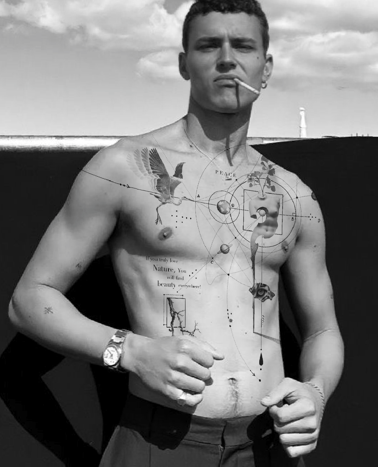 This is a perfect tattoo design for those who find peace in the beauty of the natural world. This piece symbolizes the deep connection between humanity and the cosmos. I think this design would be a powerful reminder that beauty is all around us. Just go to nature, take a deep breath, and look around guys.
