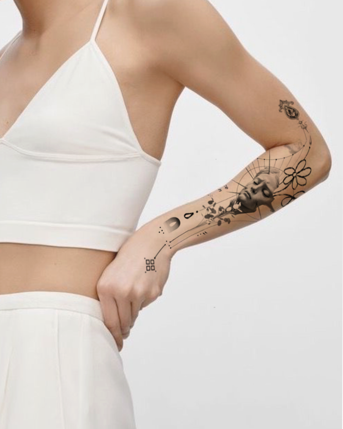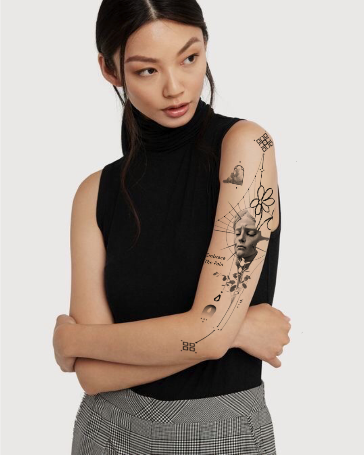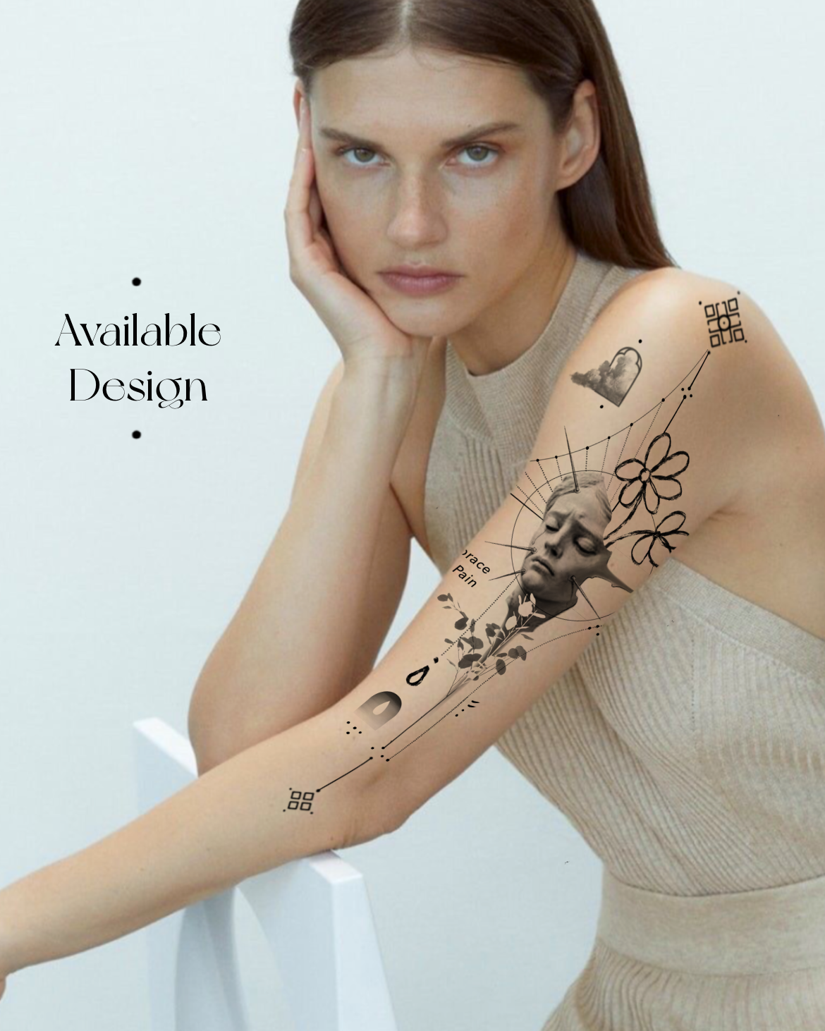 - Designs can be slightly altered to fit the body. Things can be added or subtracted to not go onto certain areas such as the neck, hands, or face if desired.